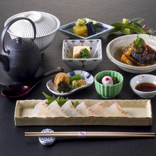 四季折々の旬の食材を活かした料理の他、愛媛の郷土料理「宝楽焼き」や「鯛茶漬け」も味わえます。